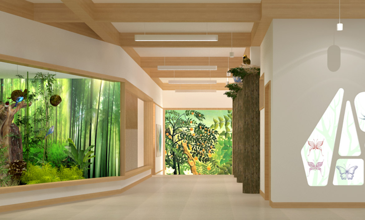 2 floor DesignTheme as Natural science study ,Designer benefit use present HaveSpace2 floor Corridor hit build exit OneNaturalEcological hall , also is garden within 1 large Design bright point 。